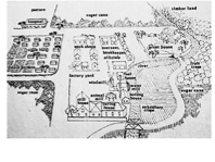 Imagen 4: De lado derecho. Tipología del S.XIX de plantación caribeña. El batey aparece en la parte superior izquierda. García, Alicia, Las primeras villas de Cuba, 2008, Ediciones Polymita S.A.