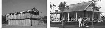 Imagen 6: De lado derecho. Edificación que muestra una típica vivienda en el batey del ingenio Barahona para 1928. Pérez, Eugenio. Los paradigmas de la nacionalidad: Arquitectura y Desarrollo Económico Republicanos 1844-1930, 2008.